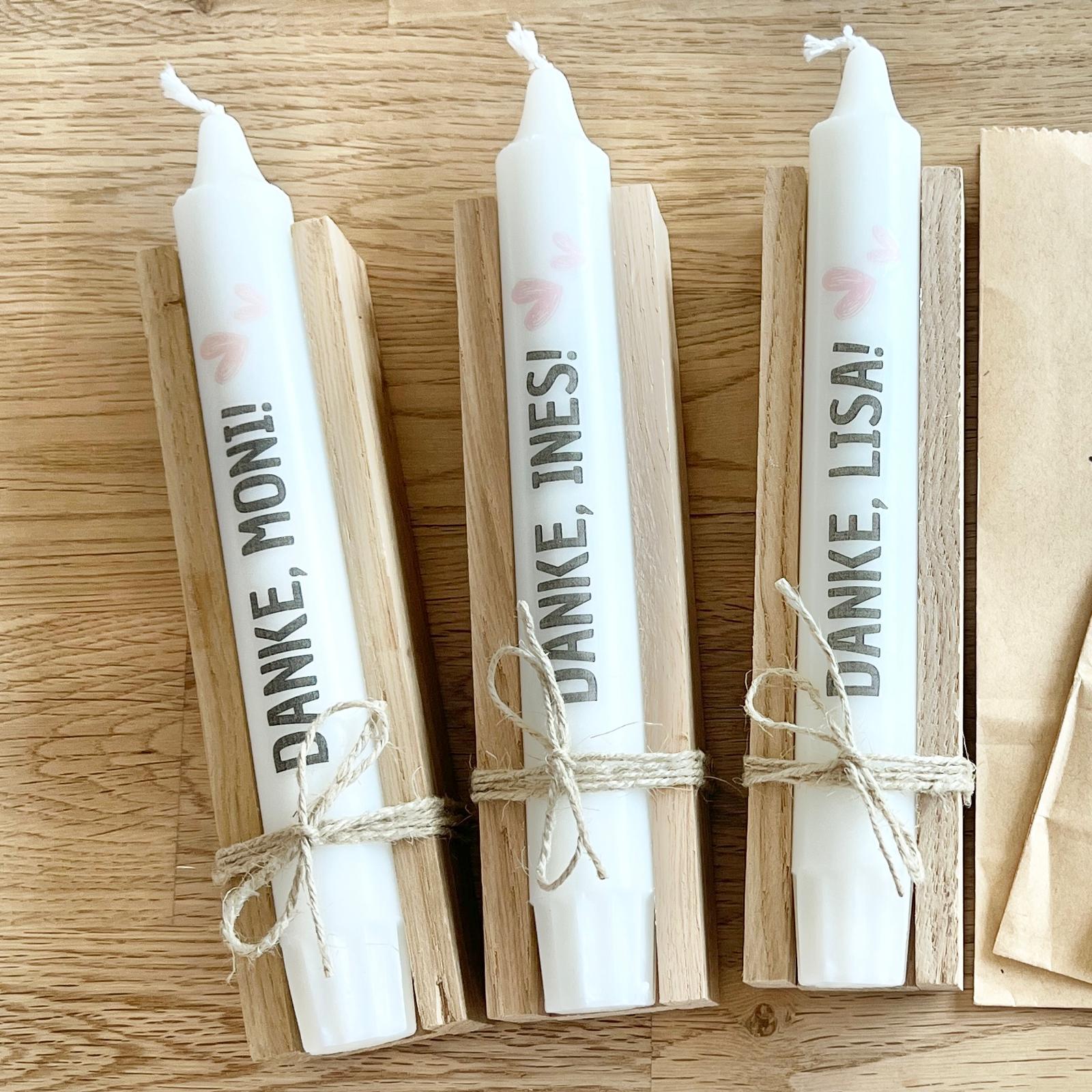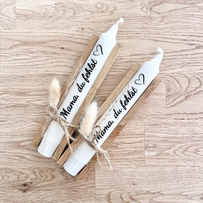 Handgestaltete Kerzen für besondere Anlässe: klassische Taufkerzen mit Vinylfolie, Stabkerzen im Holzschiffchen mit Vinyl- oder Wasserschiebefolie und weitere individuelle Designs auf Wunsch. Jede Kerze wird mit viel Liebe zum Detail gefertigt.
