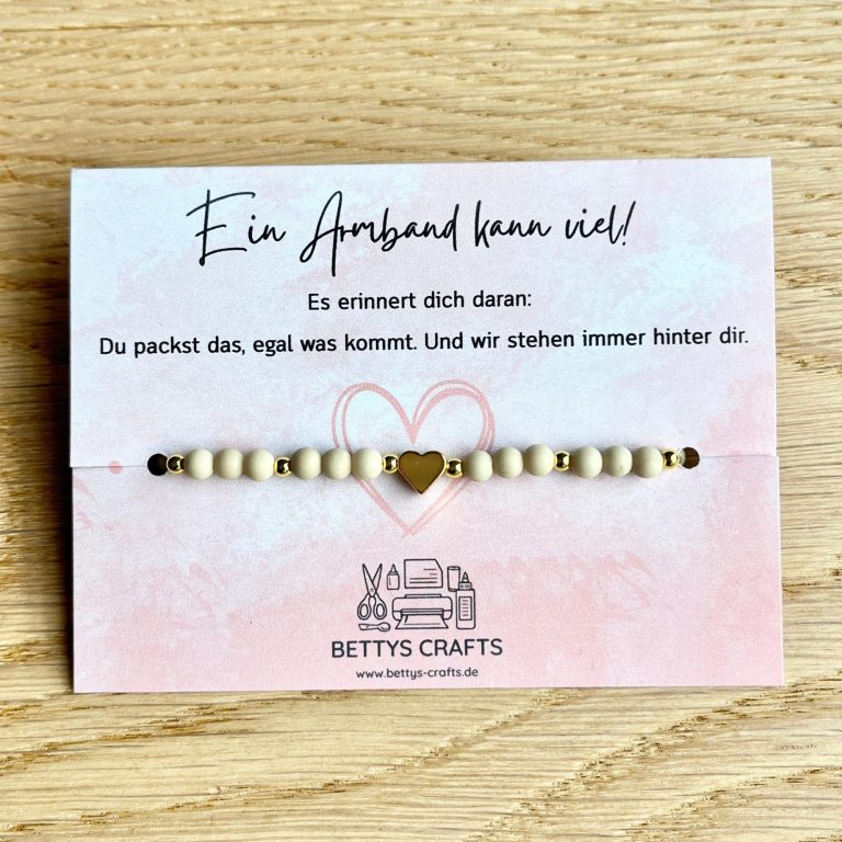 Hier findest du handgemachte Kleinigkeiten wie Armbänder, Glückwunschkarten und weitere persönliche Geschenkideen. Viele der Produkte lassen sich mit einem passenden Kärtchen oder Text individuell auf den jeweiligen Anlass abstimmen.