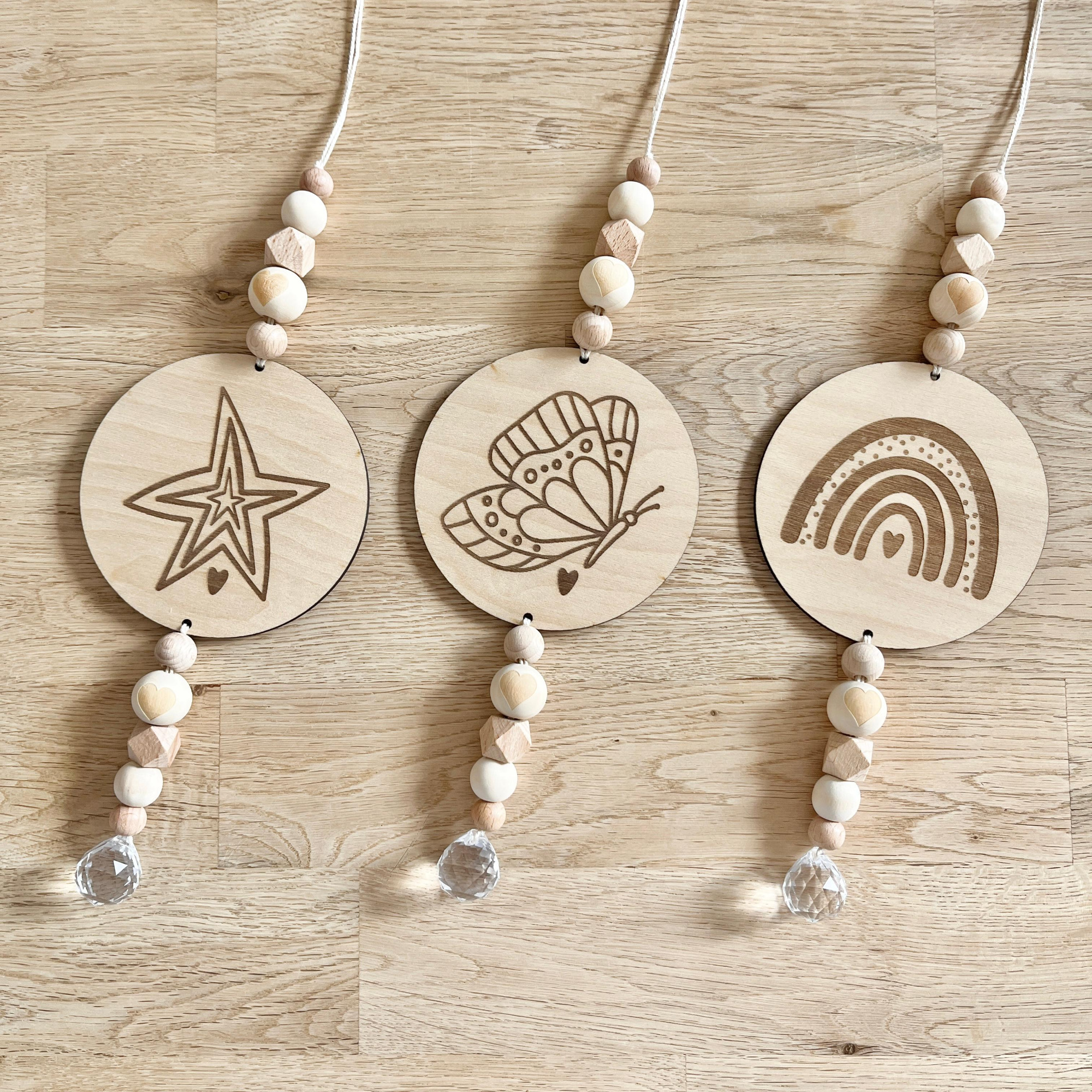 Sonnenfänger für besondere Momente: zur Geburt, zur Schuleinführung, zur Hochzeit, zu Feiertagen wie Ostern oder Weihnachten, zum Gedenken oder einfach ohne Anlass. Jedes Stück ist ein handgemachtes Unikat, das Licht und Freude einfängt.